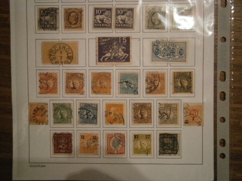 - Schweden umfangreicher auf 1 Seite u.a. mit Aufdruckmarken und Paaren