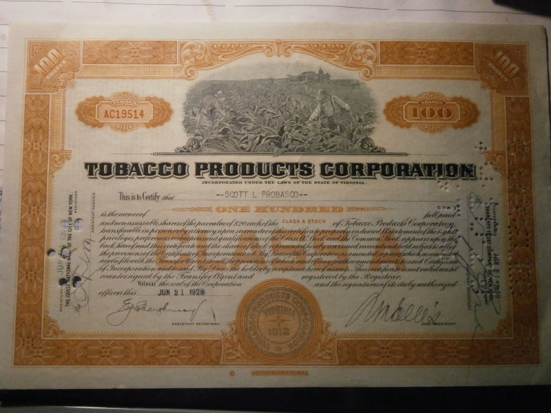 Aktie der Tobacco Products Corporation, Virginia USA